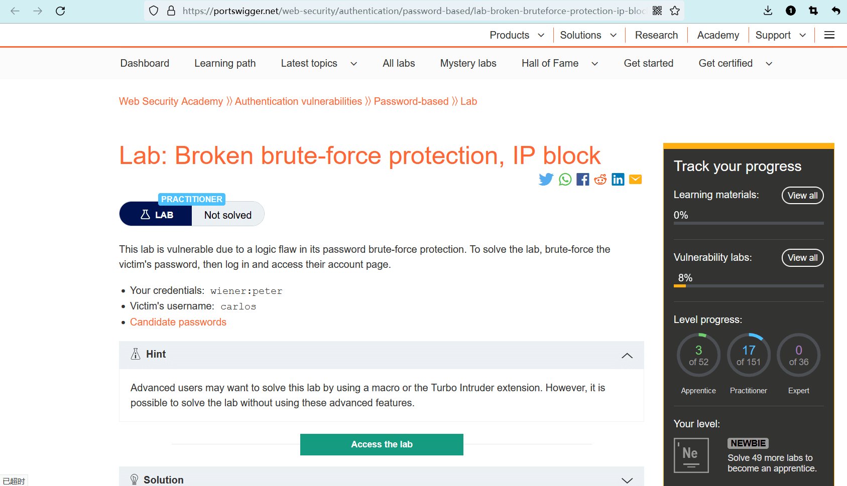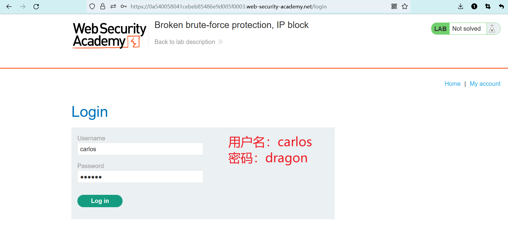 - 该实验室存在暴力攻击漏洞。