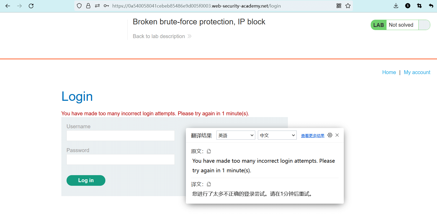 - 该实验室还增加了一种 “基于 IP 锁定的暴力攻击保护”,需要尝试绕过。