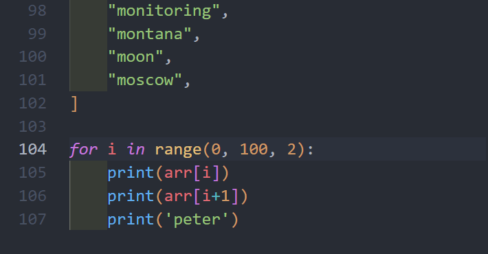 for i in range(0, 100, 2):