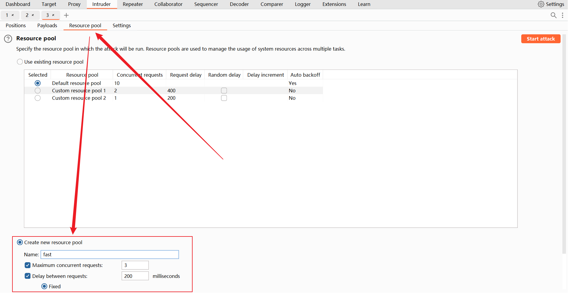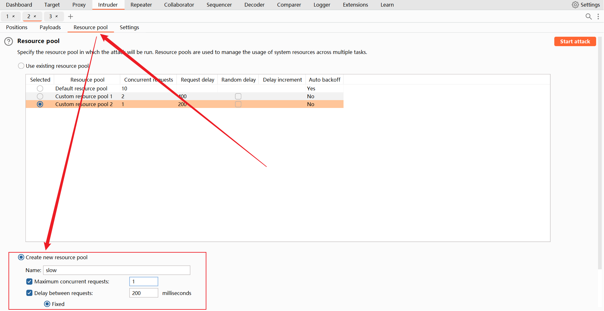 然后点击 “Start attack” 开始攻击。