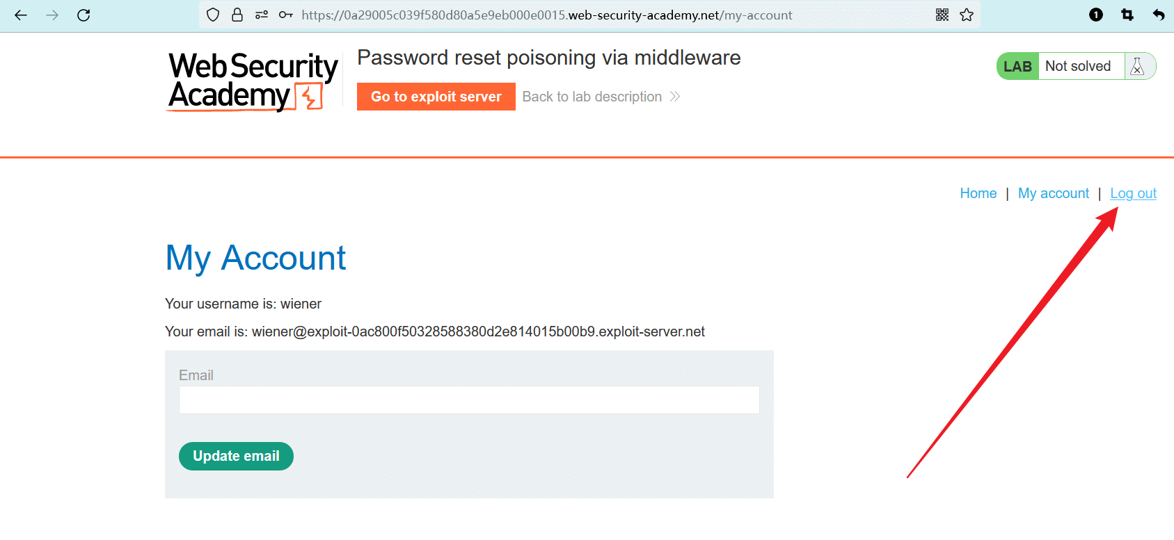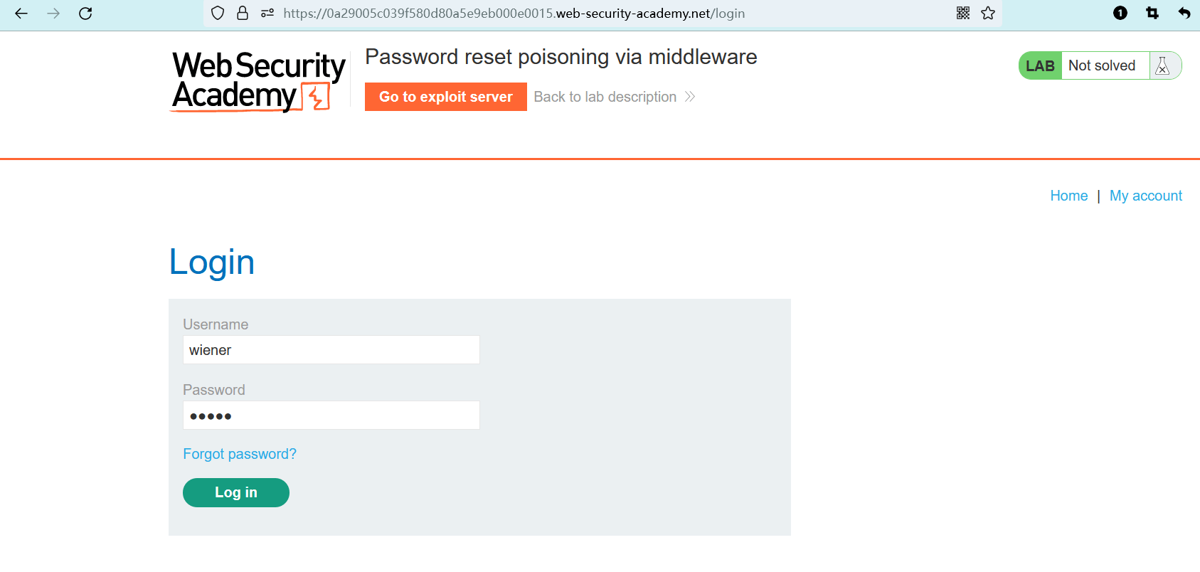 访问密码重置链接,可以修改 wiener 用户的密码: