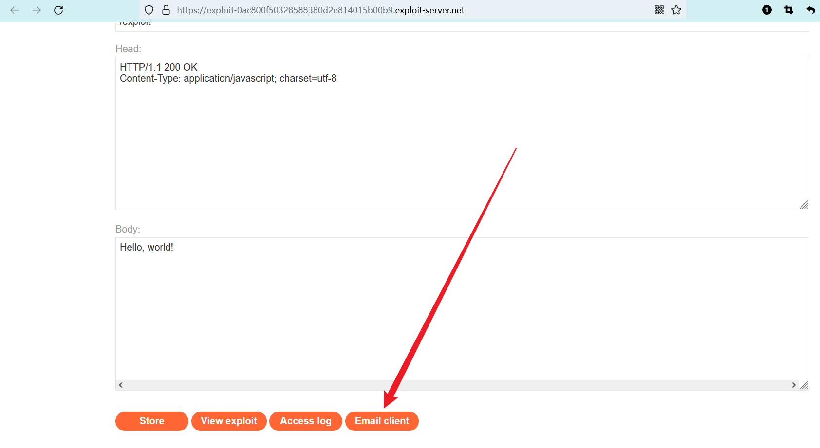 点击上方的 “Go to exploit server” 进入实验室提供的漏洞利用服务器。