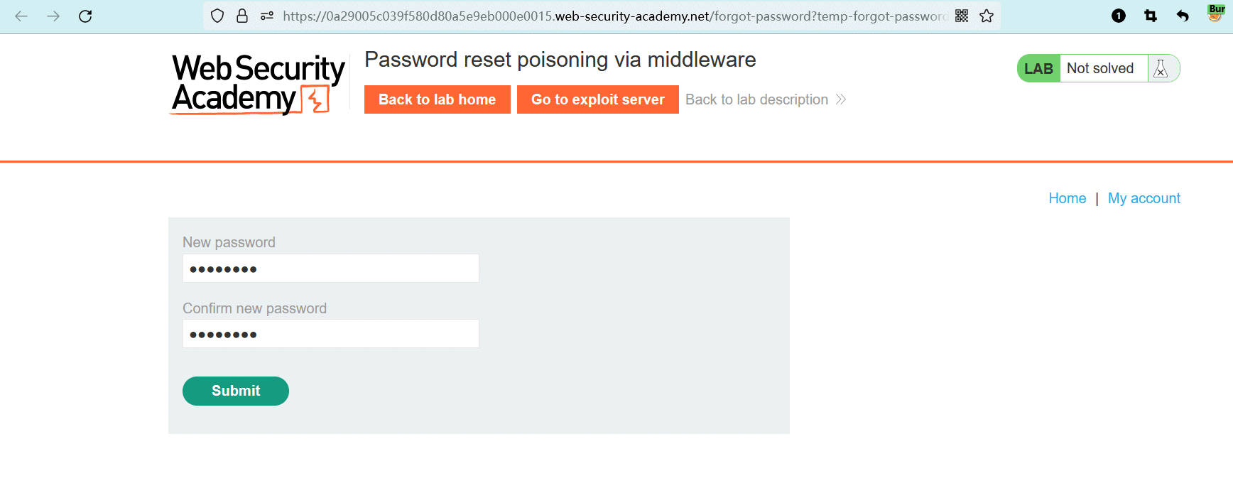 - 该实验室存在 “密码重置功能” ,但该功能容易受到 密码重置投毒 的影响。
