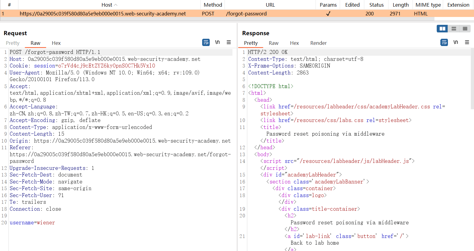 link: https://portswigger.net/web-security/authentication/other-mechanisms/lab-password-reset-poisoning-via-middleware