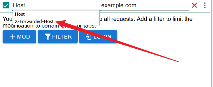 原来的 Host 标头保持不变,在下方添加一个新的 X-Forwarded-Host 标头。