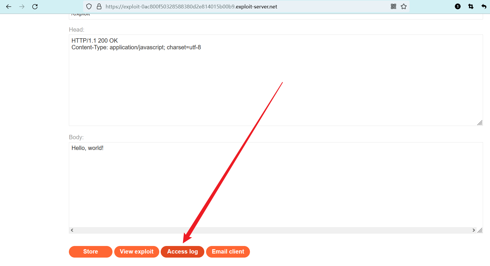 回到漏洞利用服务器,点击 “Access log” 查看访问日志。
