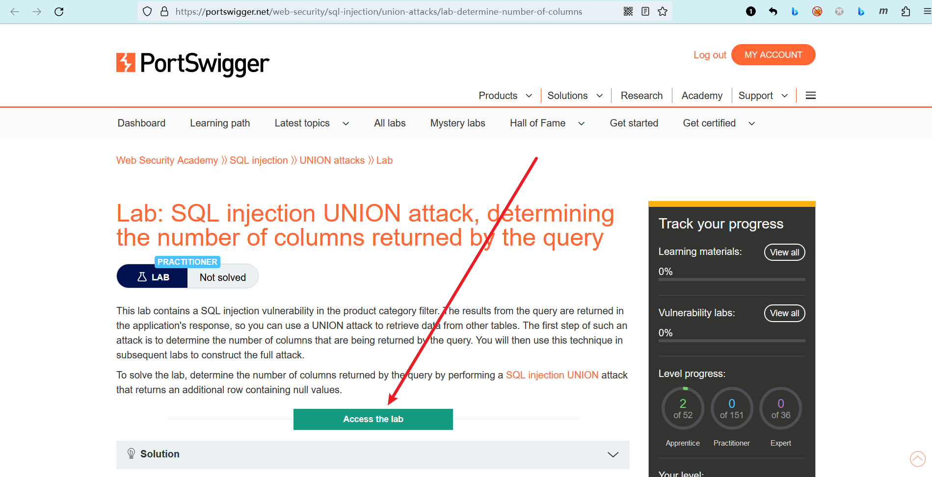 link: https://portswigger.net/web-security/sql-injection/union-attacks/lab-determine-number-of-columns