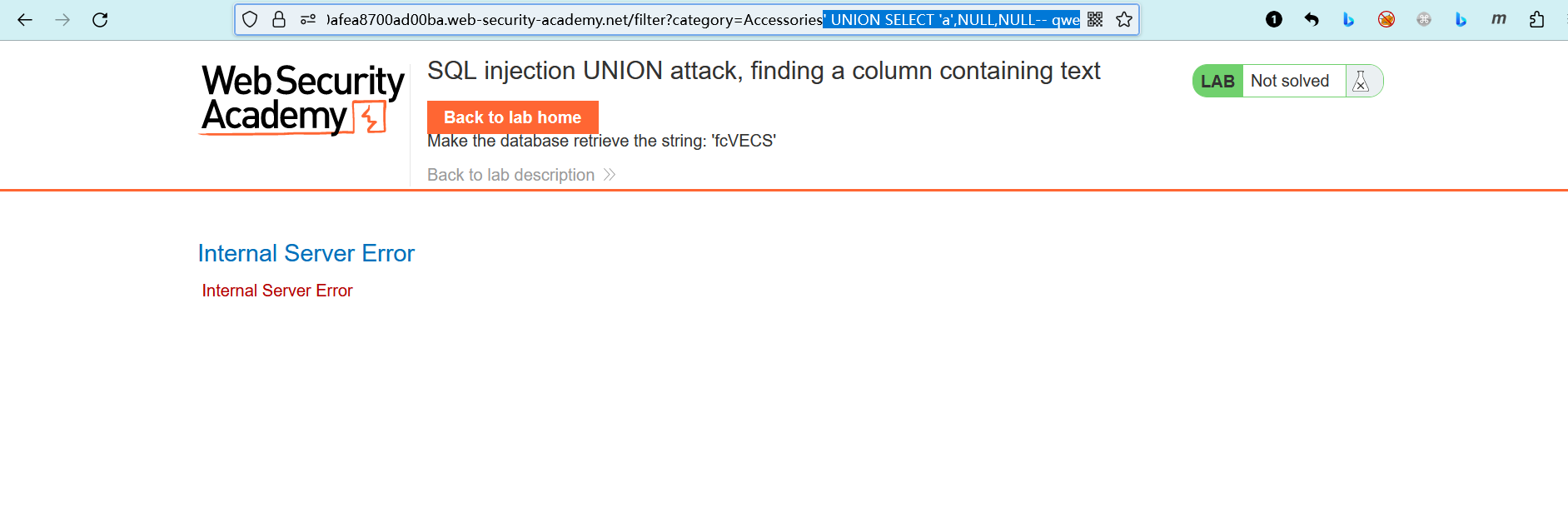 页面返回了字符串fcVECS,并且实验室提示我们完成了实验