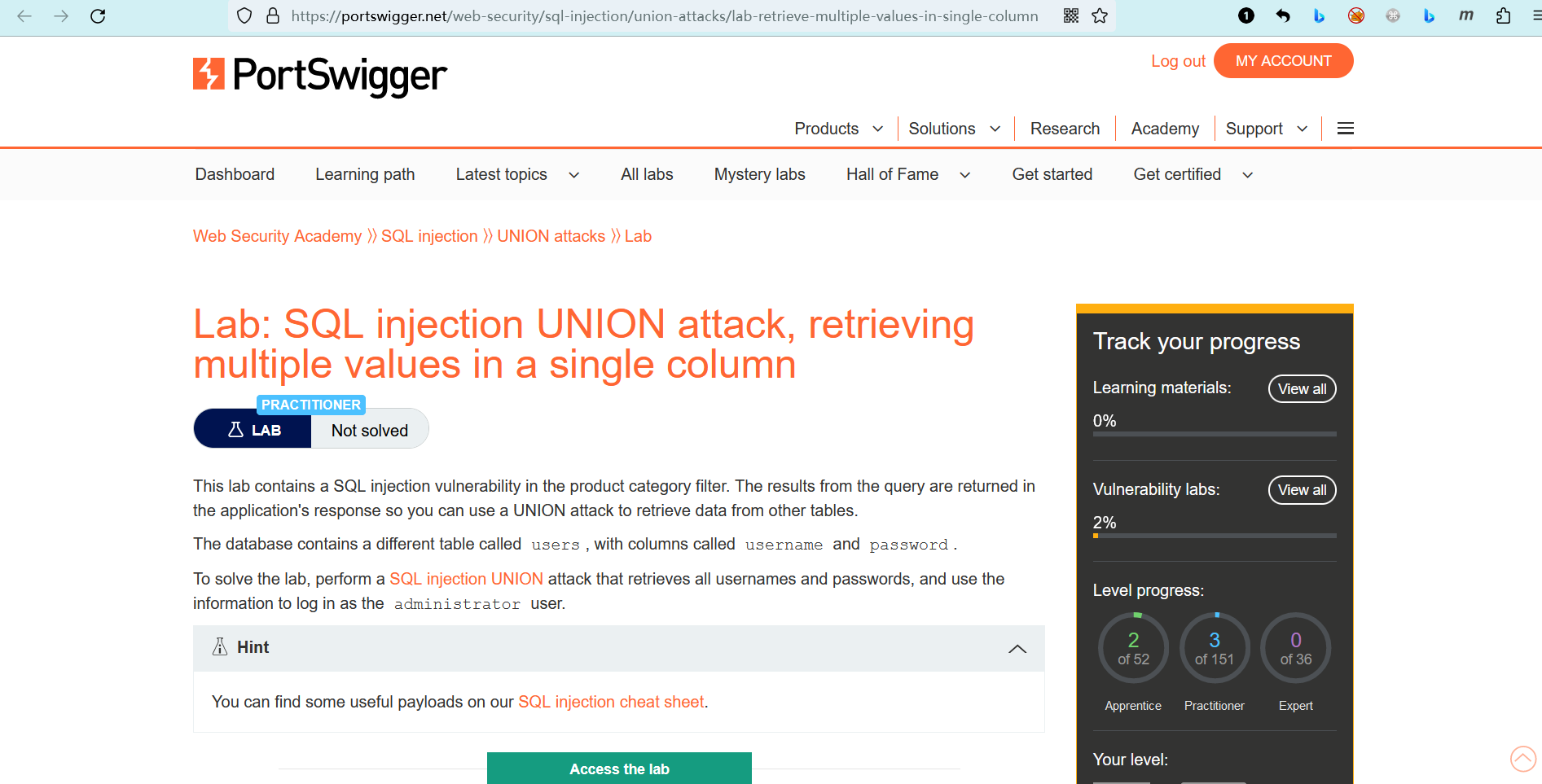 link: https://portswigger.net/web-security/sql-injection/union-attacks/lab-retrieve-multiple-values-in-single-column