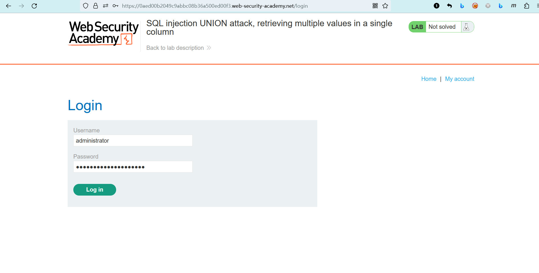 根据题意,我们需要以administrator用户的身份进行登录,点击 “My account” 进入登录页面