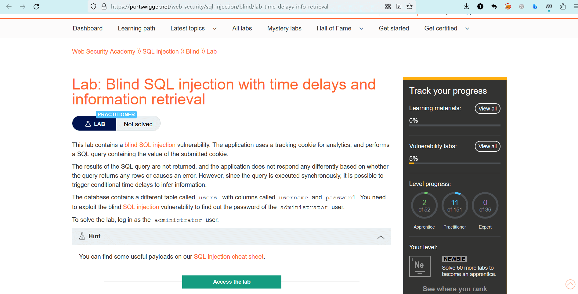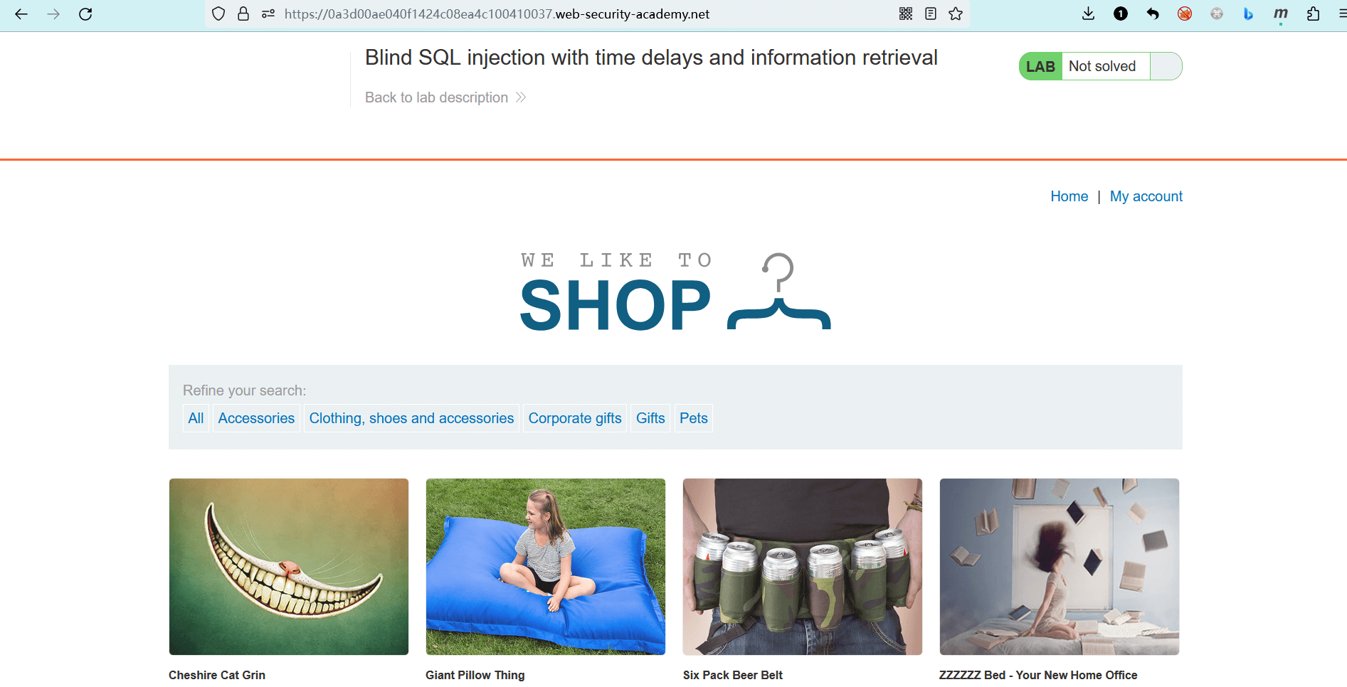 link: https://portswigger.net/web-security/sql-injection/blind/lab-time-delays-info-retrieval