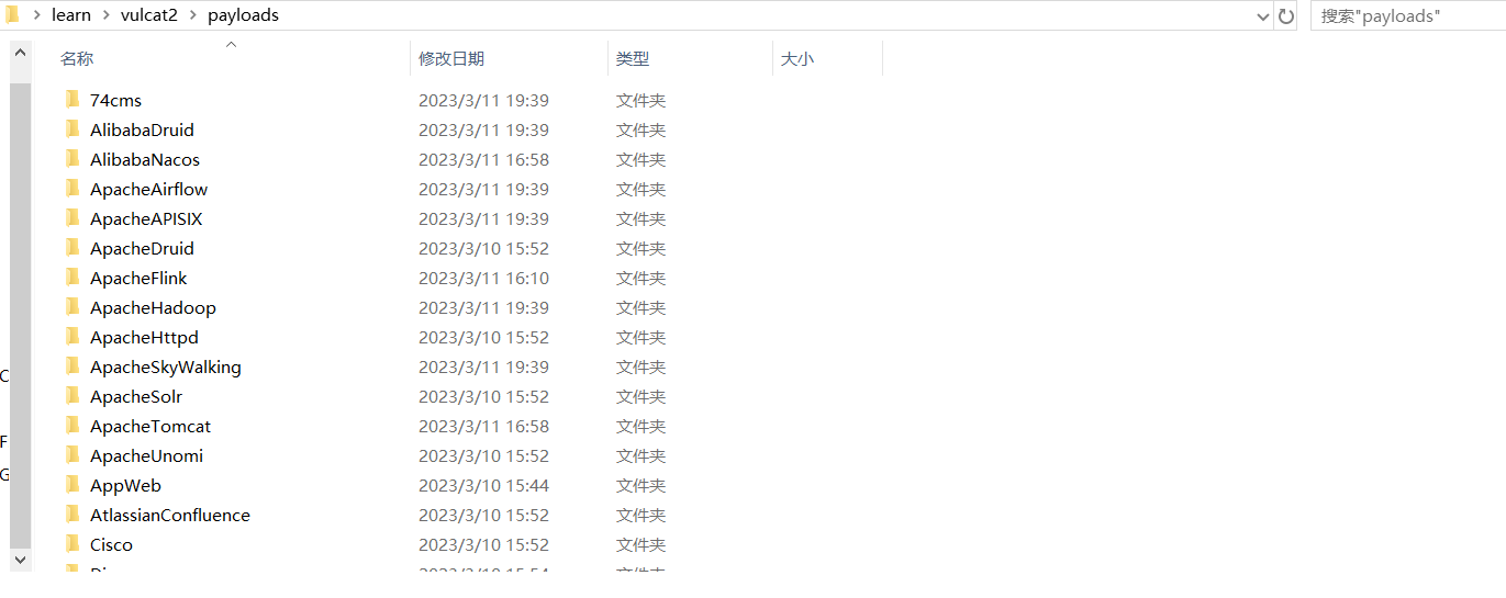 在进行漏洞检测时,vulcat将会自动搜索该目录下的有效载荷,并对检测目标使用