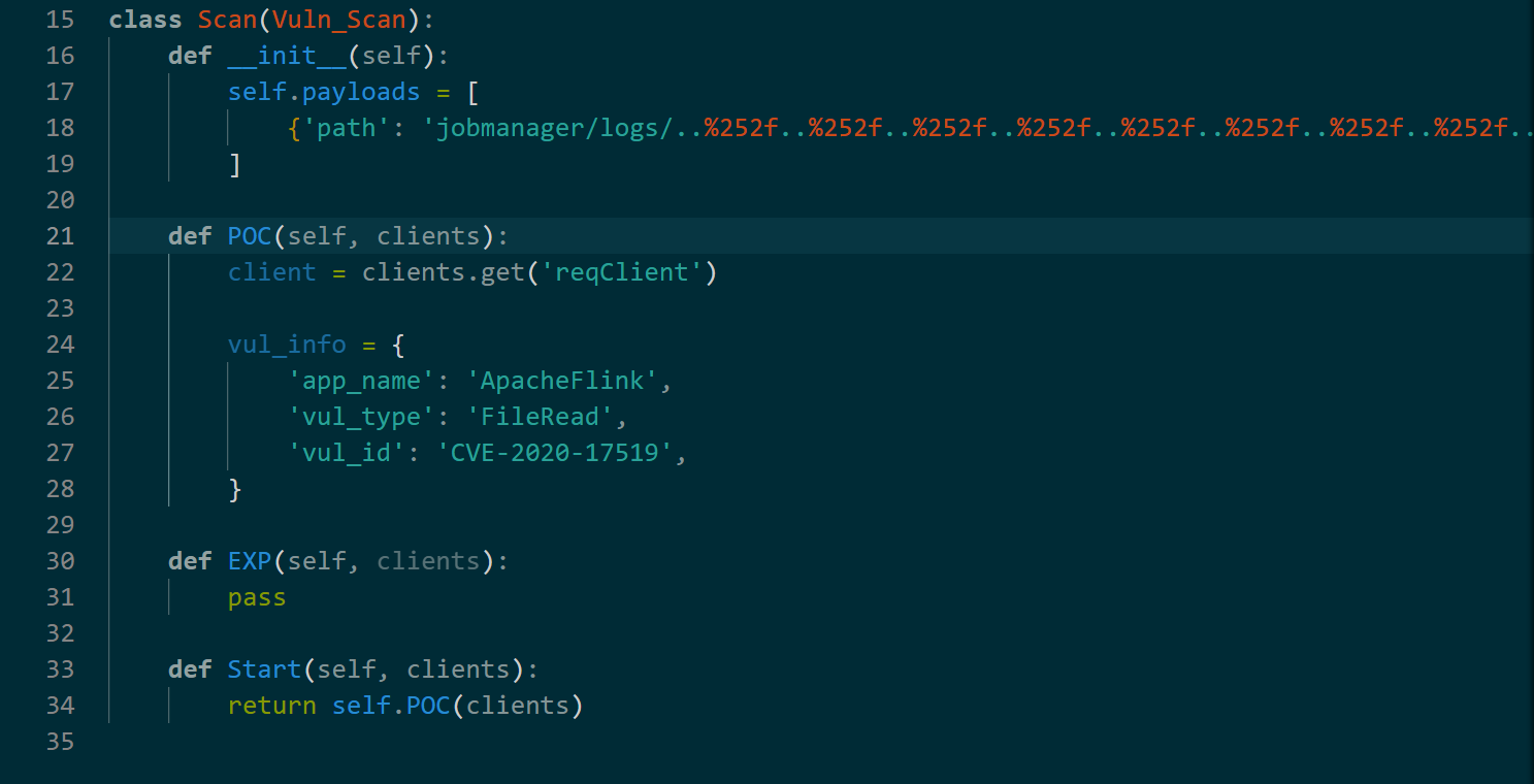 最后,在Start方法中进行调配,此处直接返回一个self.POC(clients),其中传递了一个参数clients