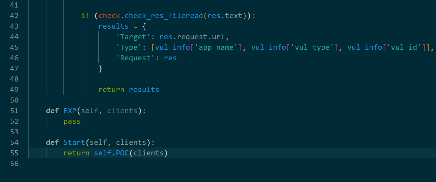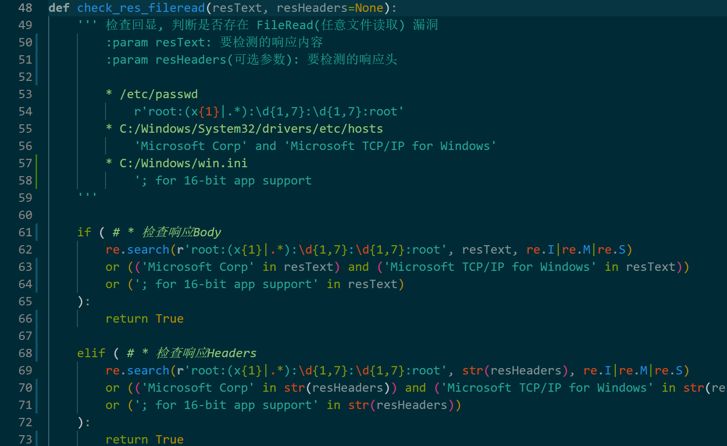 对于文件读取漏洞,你可以使用vulcat自带的方法check.check_res_fileread()来进行检测