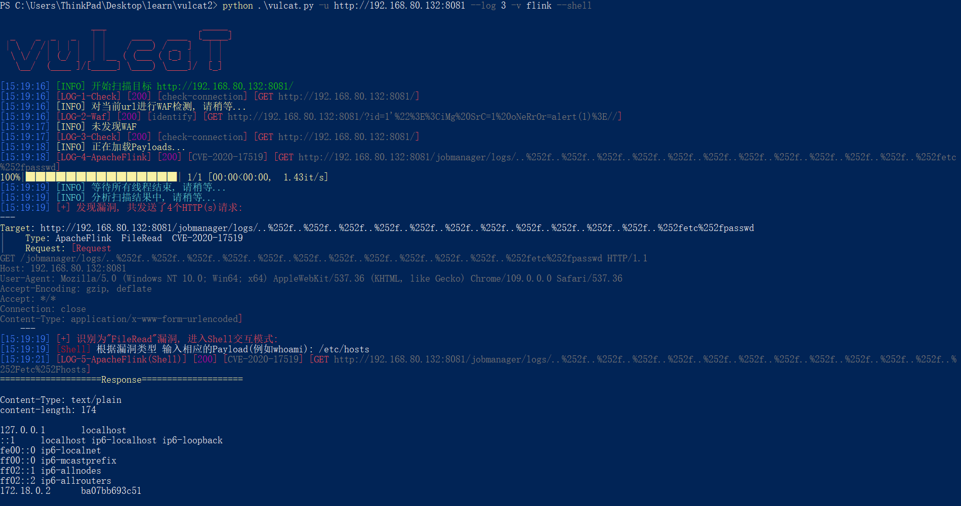 现在,vulcat会自动识别你编写的载荷,你可以运行vulcat测试效果
