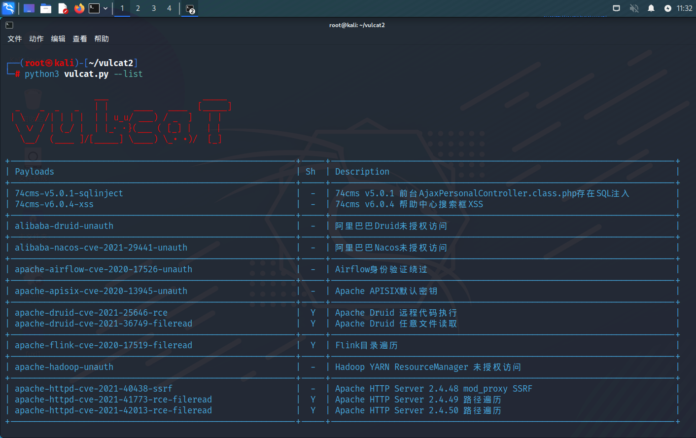 - 是否支持vulcat的Shell交互模式(Y表示支持)