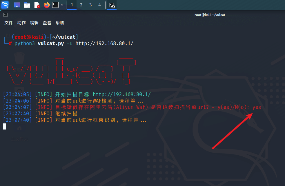 - 如果输入y或yes,则会继续进行 指纹识别和POC扫描等操作