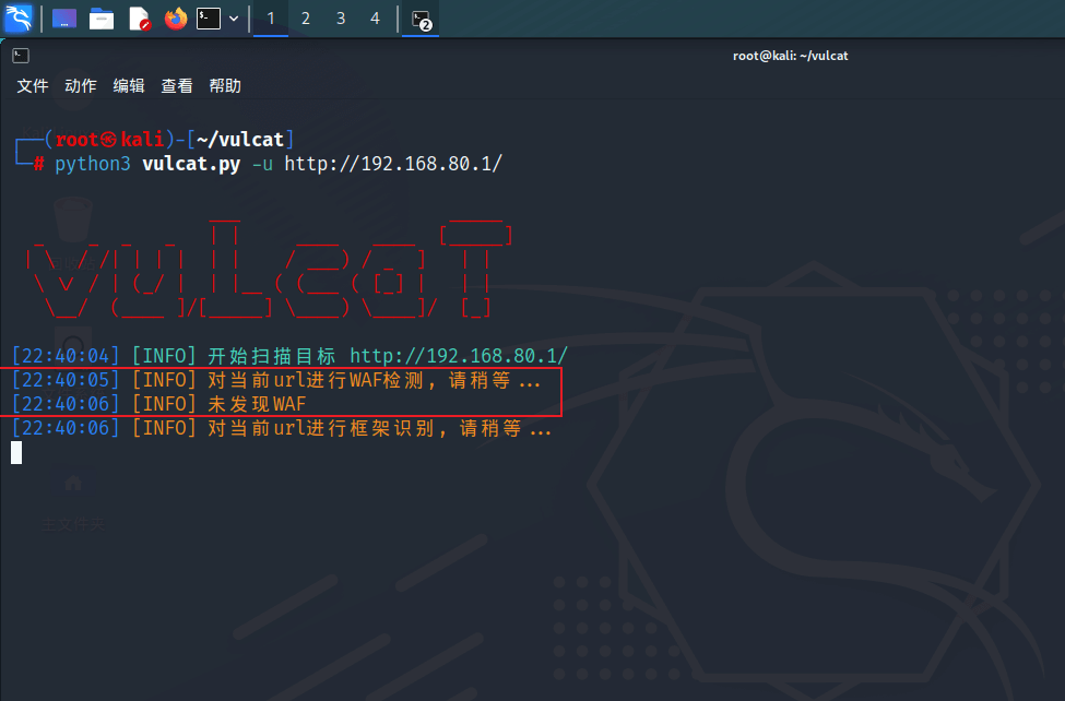 python3 vulcat.py -u http://192.168.80.1/ --no-waf